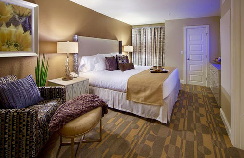 Enjoy spacious condo-style 2 bedroom villas complete with living room and in-unit washer/dryer. Prepare family meals in your full kitchen with cookware and dining table with tableware included. Wi-Fi, parking, and a resort shuttle that stops along the Vegas Strip and Fremont Street Experience are also free for all guests!